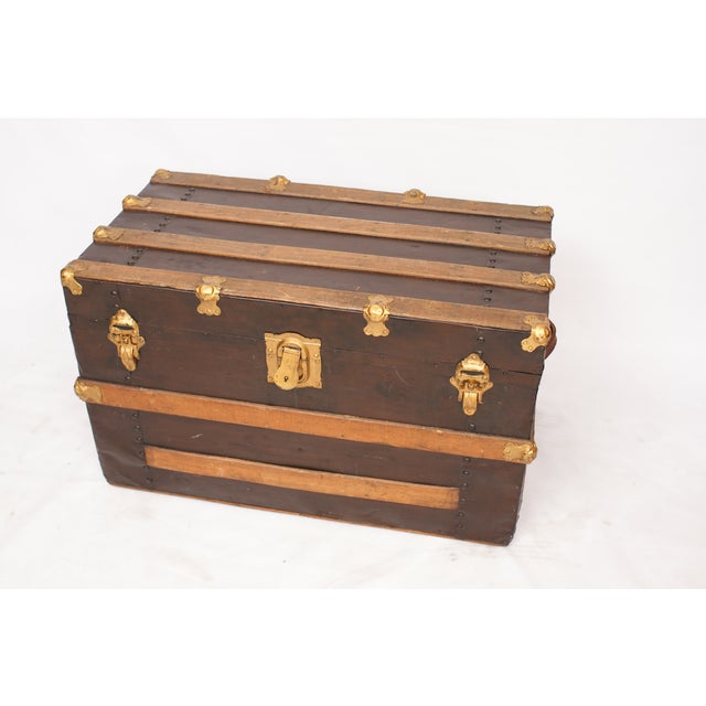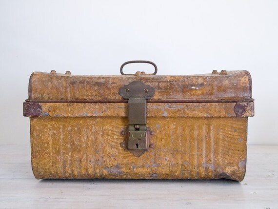 good antique vintage industrial metal steamer trunk coffee